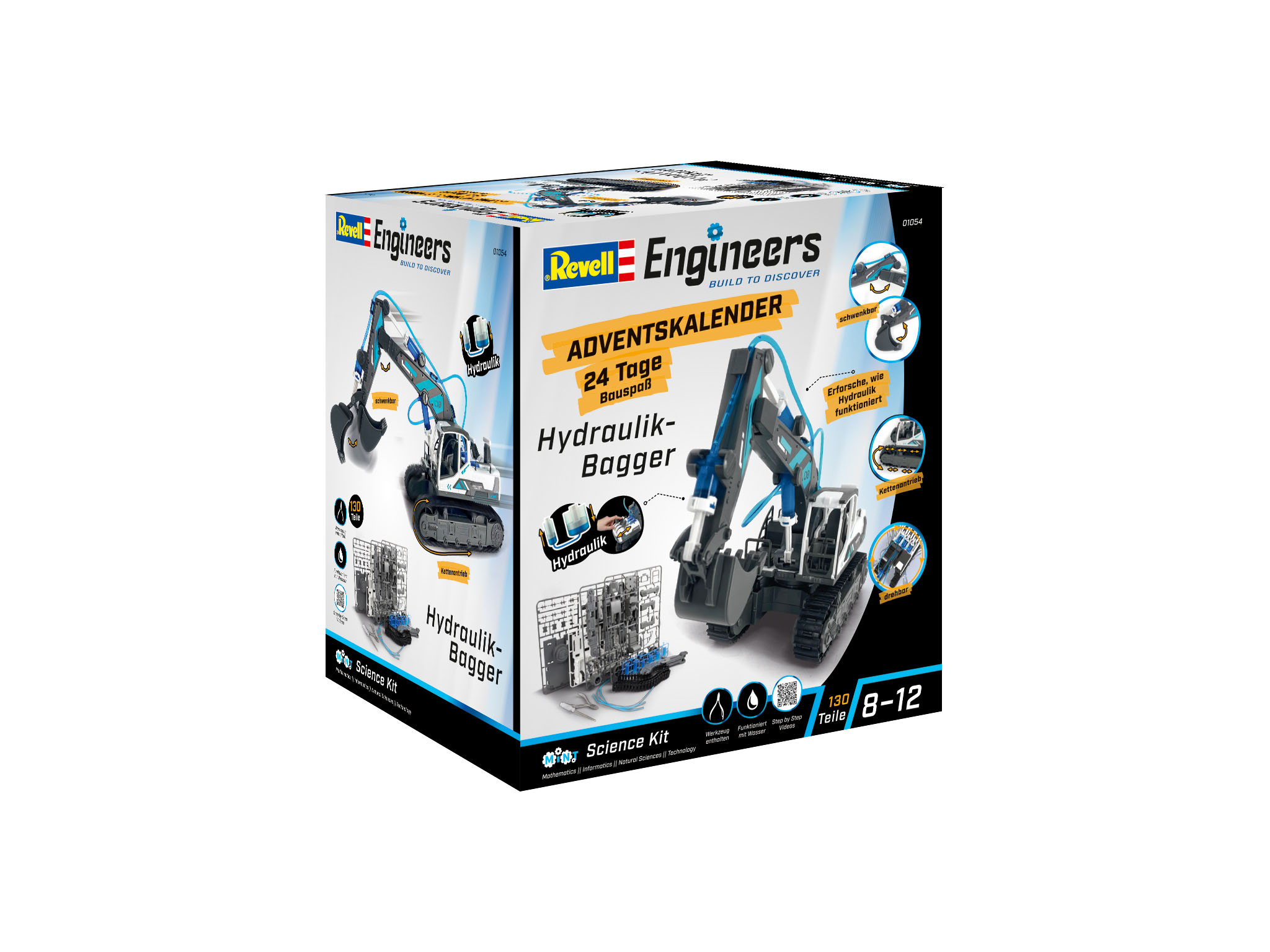 Steigern Sie die Vorfreude auf Weihnachten und entdecken Sie das faszinierende Universum der Technik mit dem Adventskalender Engineers „Hydraulischer Bagger“ von Revell!